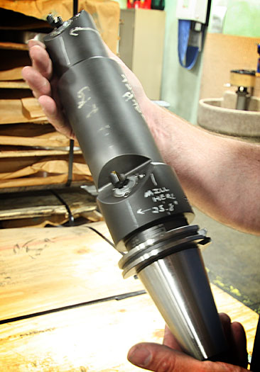This Cat 50 custom boring bar was bought in to the shop for a Dynamic Two Plane balance. The specification was to a G2.5 tolerance. The initial imbalance areas were defined and part was layed out for material removal. Care was taken to ensure that were the material was removed from did not interfere with the internal coolant lines. Material was removed by milling to give the tool a cleaner look. The balance tolerance was achieved and sent on to customer.