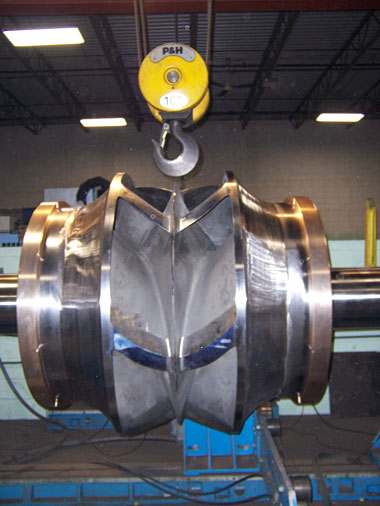 Balancing this 13,000 lb Inconel Impeller was a two step process. First step was to remove the imbalance with out the Impeller coated. Once achieve the Impeller was sent out for coating. With out the exact weight of the coating the Impeller was coated and bought back for rebalance. After the imbalance from the coating determine our technician ground off the material with enough to compensate for the recoat of the ground area. Impeller was recoated and returned. Impeller was check and found in spec.